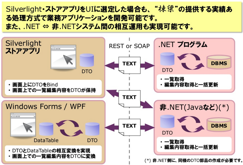 汎用 DTOは、非.NET Framework 環境におけるビジネス・アプリケーション開発の 生産性を向上させるための、データ編集処理をサポートするコンポーネントです。
