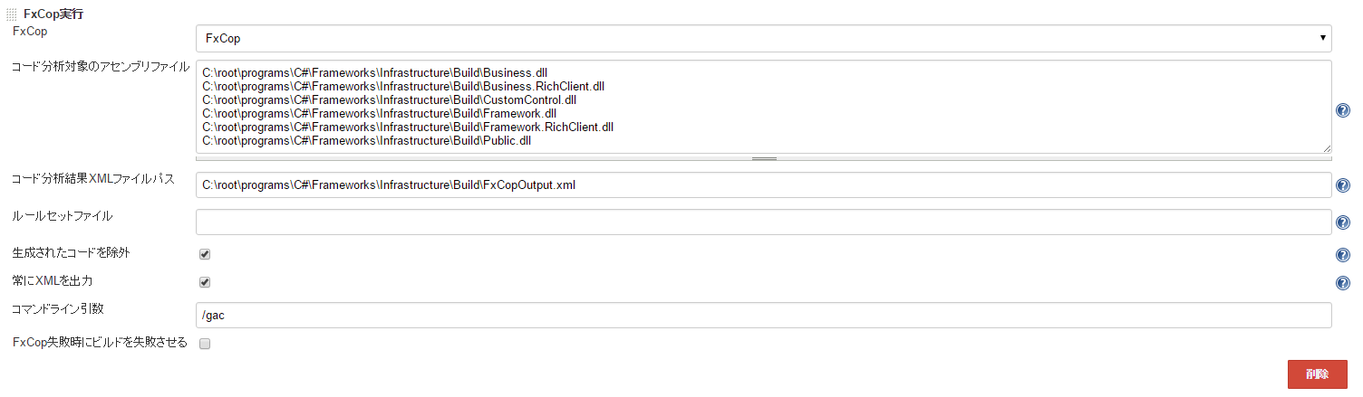 "C#" ---> "CS"の件もそうですが、FxCop? Runner Pluginは、ちょっと品質が低い気がする。