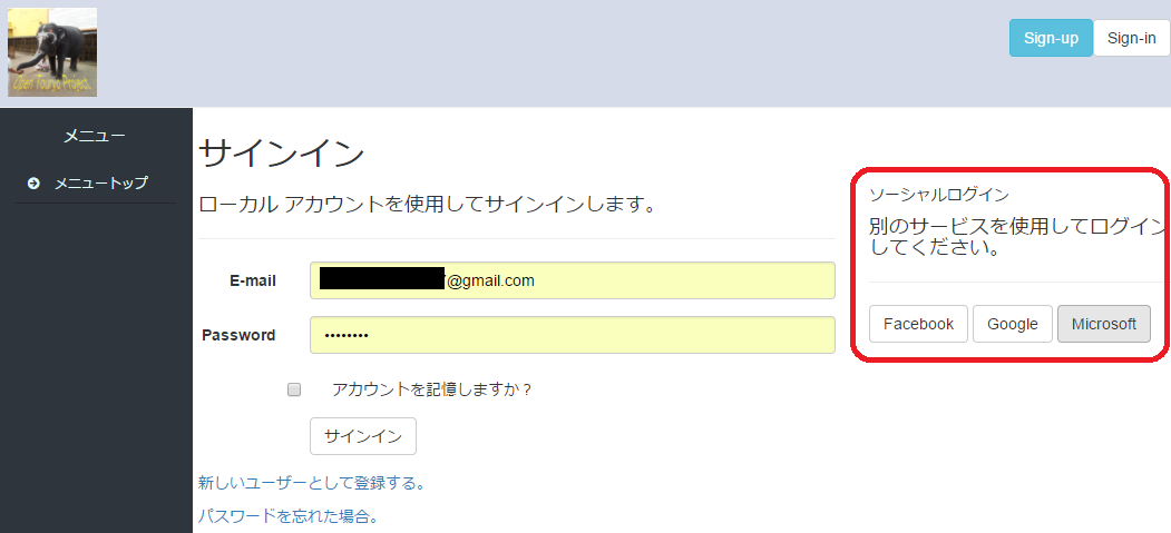 外部のIdpにサインアップする。 †
