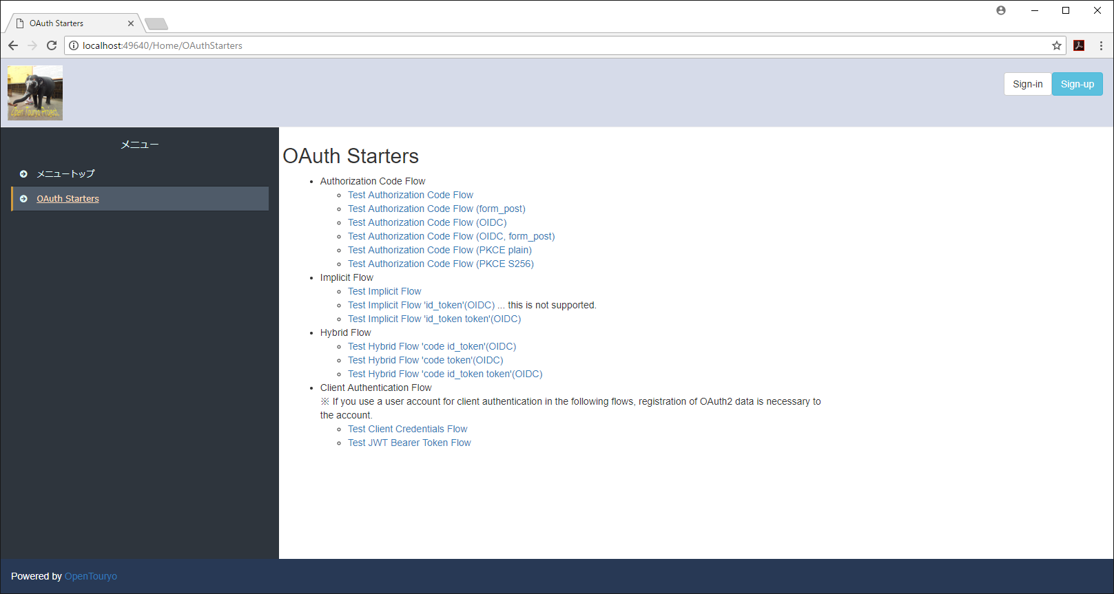 STSテスト・メニューでは、OAuth2/OIDC機能を検証できます。