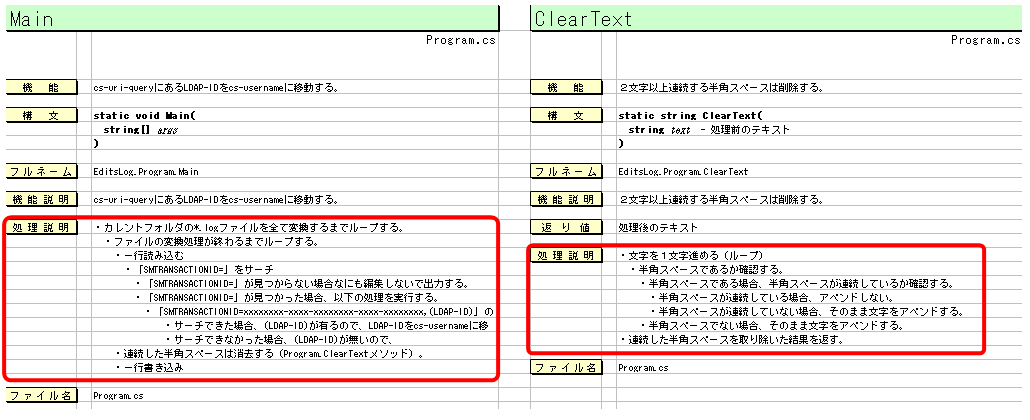 「処理説明」の見易さなどを意識する必要がある。
