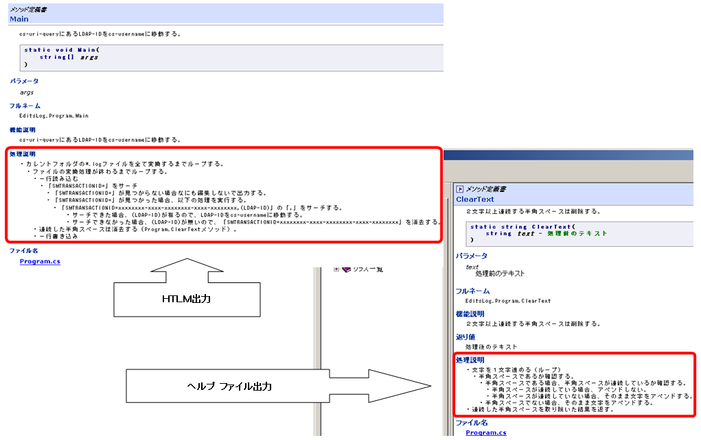 HTML、ヘルプ ファイル出力例 †